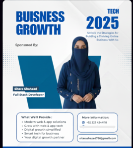 I’m Sitara Shahzad, a Full Stack Developer specializing in MERN & MEAN stacks, committed to empowering businesses with intelligent, future-ready digital systems.